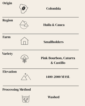 Echo is our take on a half-caff that doesn’t feel like a compromise. We blended a vibrant caffeinated Colombia Cauca with a decaf Pink Bourbon from the same region—both full of character, both grown with care.