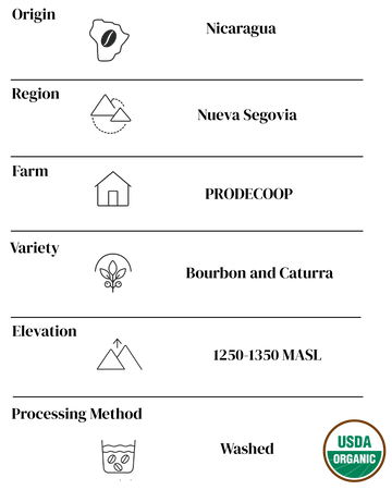 If you’re someone who loves a rich, dark cup—something bold and full bodied but still smooth —this one’s for you. This Fair Trade Organic Nicaragua comes from the PRODECOOP cooperative in Nueva Segovia, where smallholder farmers grow Bourbon, Caturra, Catimor, and Typica varieties at elevations between 1,250 and 1,350 meters. The result is a consistently delicious coffee that’s both complex and incredibly comforting.